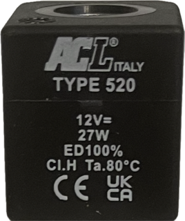 ACL Type 520 12VDC 27WACL 520 12VDC 27W bobina elettrovalvola acl 27w 12vdc type 520 - idroenergiaitalia ricambi elettrovalvole ode acl camozzi pneumax parker ceme