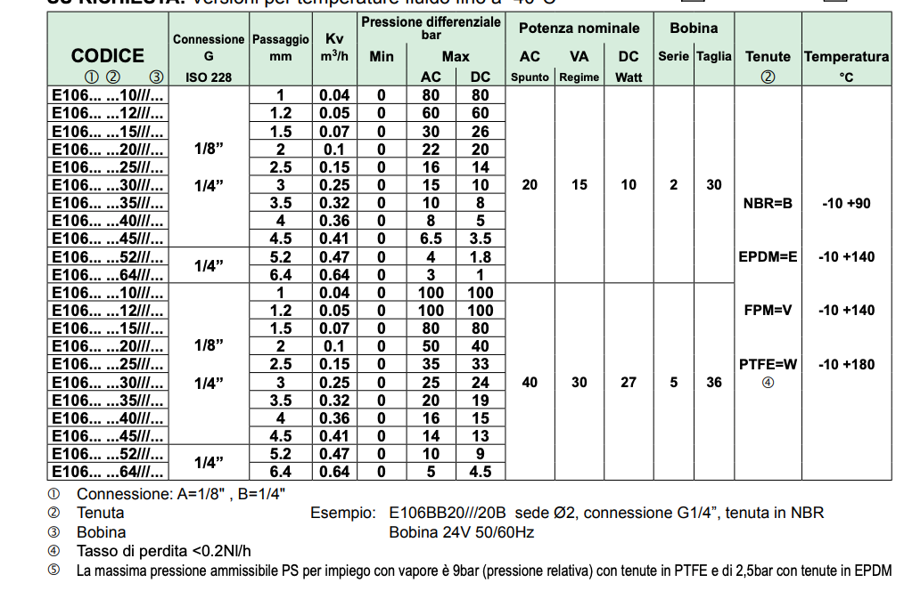 E106BB20, ACL, NBR, Elettrovalvola 2 vie normalmente chiusa 1/4", senza bobina,