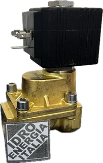 DESCRIZIONE Elettrovalvola 2 vie normalmente chiusa servo-azionata a pistone, COSTRUZIONE Corpo e coperchio Ottone, Tubo guida AISI 303, Nucleo mobile e fisso AISI 430FR, Molle AISI 302, Pistone Ottone, Otturatore pistone PTFE, Organi di tenuta Tenuta principale PTFE, altre FPM,